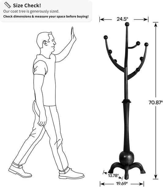 Heavy Duty Coat Rack Tree-shaped Metal Freestanding Coat Tree with Sturdy Marble Base Corner Coat Rack for Bedroom Entryway Hallway 14.96 x 10.24 x 68.9 Inches (Black)