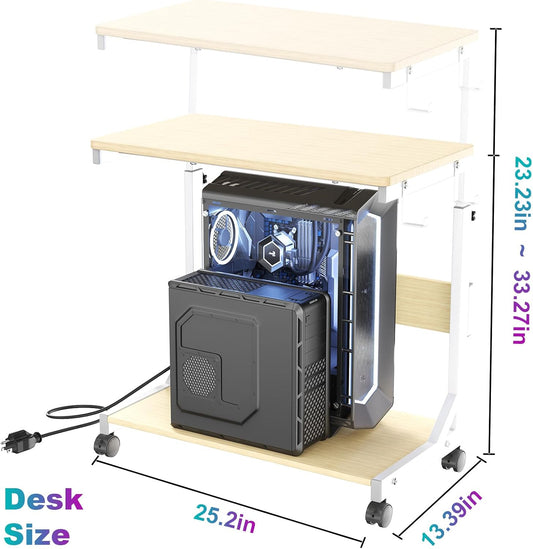 Height Adjustable Computer Tower Stand with Charge Station and USB Charging Port, 2-Tier ATX-Case Cart, Under Desk Mobile PC Stand, CPU Holder Cart with Locking Caster Wheels for Fits Most PC