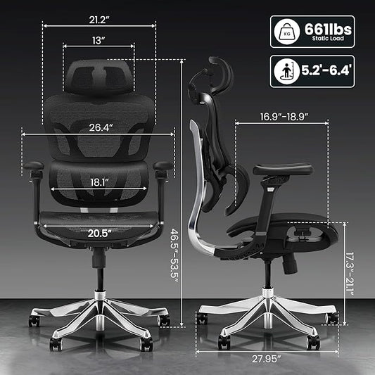 FLEXISPOT ErgoX Max Ergonomic Office Chair Black - Aluminum Alloy Frame & Base, 661 lb Capacity, 5D Armrests, 4D Adaptive Lumbar & 4D Headrest