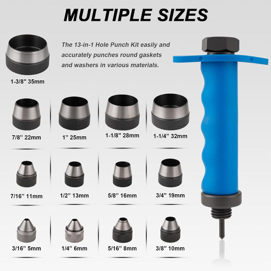 Hollow Punch Set, 14pcs Premium Leather Hole Punch Kit with Pin Point Punch Shaft, Gasket Cutting Puncher for Leather, Rubber & Plastic, 3/16" to 1-3/8"