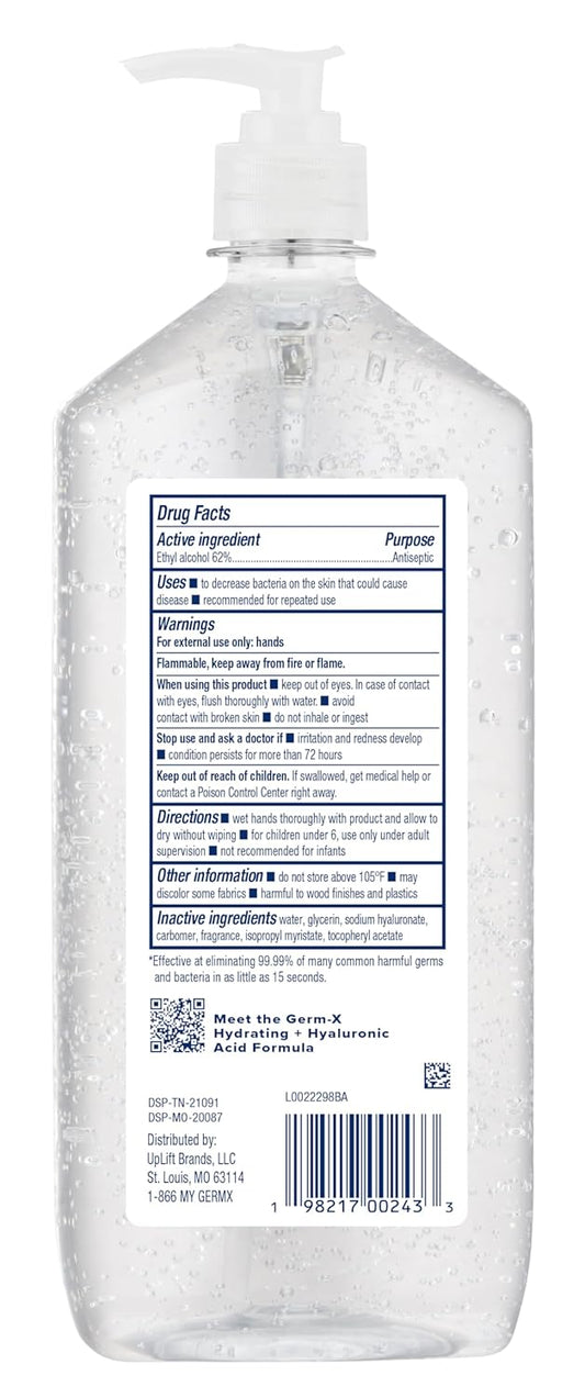 Germ-X Hand Sanitizer, Hydrating with Hyaluronic Acid, 1L Bulk Pack, Instant & No Rinse Formula, Sanitizing Liquid Gel for All Skin Types, Formulated without Parabens, Phthalates & Dyes