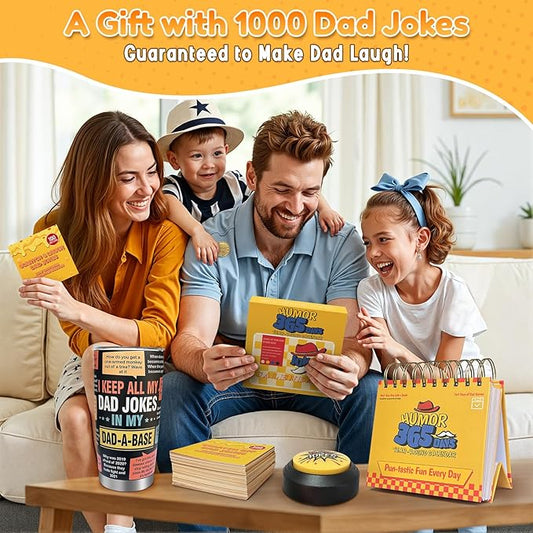 Gifts for Dad – 1,000 Dad Jokes: Jokes Button (500), 365-Day Calendar, 100 Scratch Dad Jokes Cards & 20oz Tumbler – Funny Gift for Dad, Husband, Or Friends