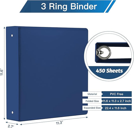 2-inch 3 Ring Binder with 2 Pockets, 2'' View Binders Holds US Letter Size 8.5'' x 11'' Paper - Versatile Binders for Office, Home, and School Use, 6 Pack (White) (2-inch Bright Colors)