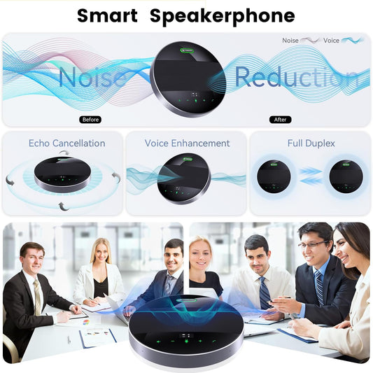 2-in-1 Conference Speaker and Microphone, Daisy Chain Wireless Bluetooth Speakerphone with 360° omnidirectional mics USB/Dongle/Bluetooth Connection 18H Talk Time for 15-30 People Meeting