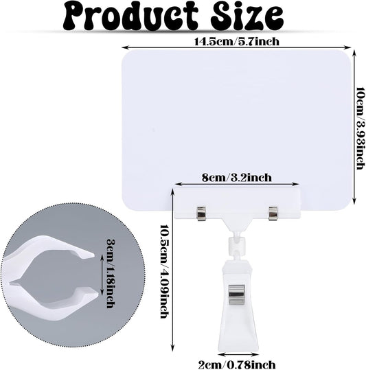 20Pack Mini Chalkboard Signs with Rotatable Clip, Erasable Double Sided Blackboard Clips Plastic Merchandise Sign Display Clip Holder for Food, Store Signs Displays (White)