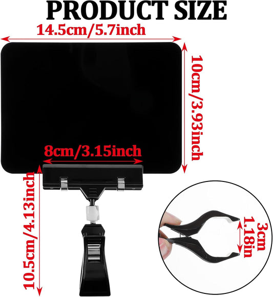 20Pack Mini Chalkboard Signs with Rotatable Clip, Erasable Double Sided Blackboard Clips Plastic Merchandise Sign Display Clip Holder for Food, Store Signs Displays (Black)