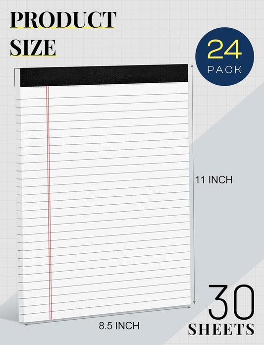 24 Pack Legal Pads 8.5 x 11 White Note Pads 8.5 x 11 Notepads 8.5 x 11 Wide Ruled White Writing Pads of Paper 8.5 x 11 Legal Notepads 8.5 x 11 White Lined Paper Pads 30 Sheets Per Legal Note Pads