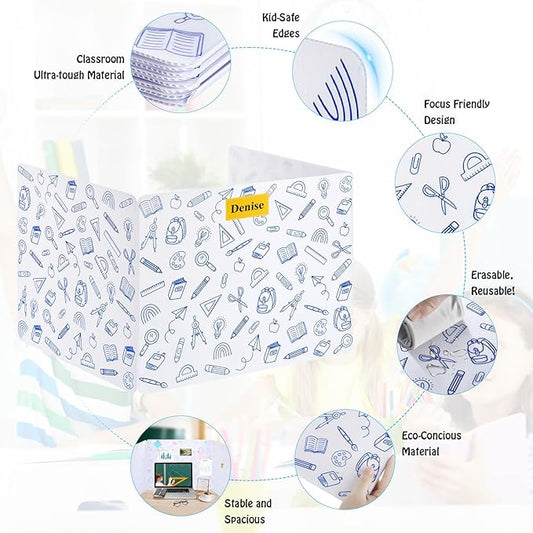24 Pack Printing Privacy Floders for Student Desks - Durable Plastic Erasable - Testing Dividers for Classroom - Easy Clean Privacy Shields for Student - Includes Extra Labels White