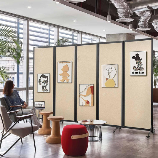 Room Partition,Folding Privacy Divider,Office Partition Dividers,Office Dividers Wall, 10'6"W x 6'7"H,Beige