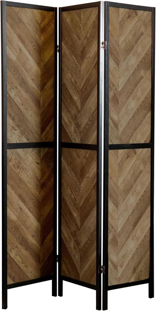 NicBex Room Divider 3 Panel Room Dividers with Herringbone Pattern Partition Room Dividers and Folding Privacy Screens Wall Divider for Home, Room Separation,52"W x 0.75"D x 70.25"H, Rustic Tobacco