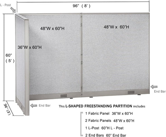 GOF Freestanding L Shaped Office Partition, Large Fabric Room Divider Panel, 36" D x 96" W x 60" H