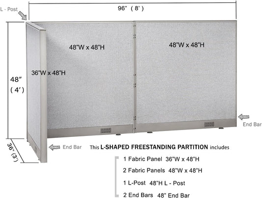 GOF Freestanding L Shaped Office Partition, Large Fabric Room Divider Panel, 36" D x 96" W x 48" H