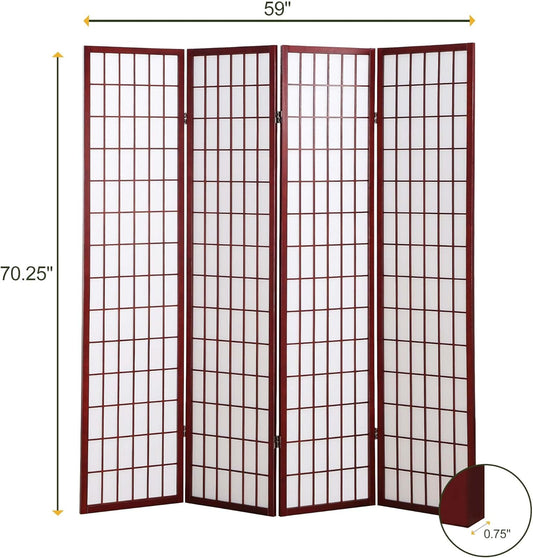 NicBex Room Divider 4 Panel Room Dividers with Oriental Style Partition Room Dividers and Folding Privacy Screens Wall Divider for Home, Office, Room Separation,72" W x 2" D x 72" H, Cherry