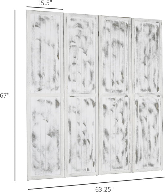 NicBex Room Divider 4 Panel Room Dividers with Whitewashed Surface Partition Room Dividers and Folding Privacy Screens 5.5 FT Wall Divider for Office, Room Separation,63.25"W x 0.75"D x 67"H, White