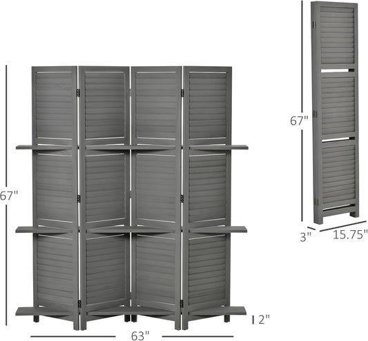 NicBex Room Divider 4 Panel Room Dividers with Storage Shelves Partition Room Dividers and Folding Privacy Screens 5.6 FT Wall Divider for Home, Office, Room Separation,63.75"W x 0.75"D x 67"H, Gray