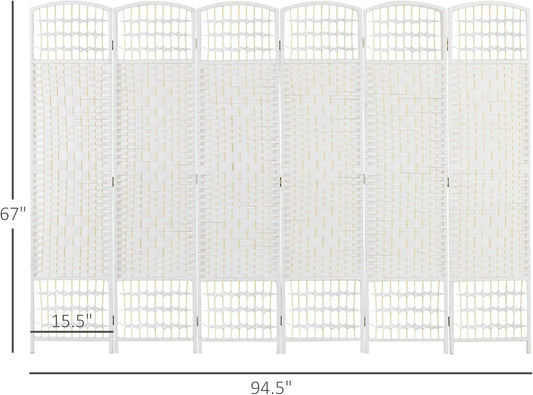 NicBex Room Divider 6 Panel Room Dividers with Woven Paper Design Partition Room Dividers and Folding Privacy Screens 5.6 FT Wall Divider for Office, Room Separation,94.5" W x 0.5" D x 67" H, White