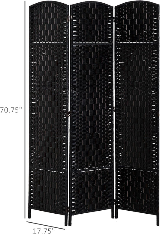 HOMCOM Room Divider, 3 Panel Folding Privacy Screen, 6FT Tall Portable Wicker Weave Partition Wall Divider for Bedroom, Home Office, Black