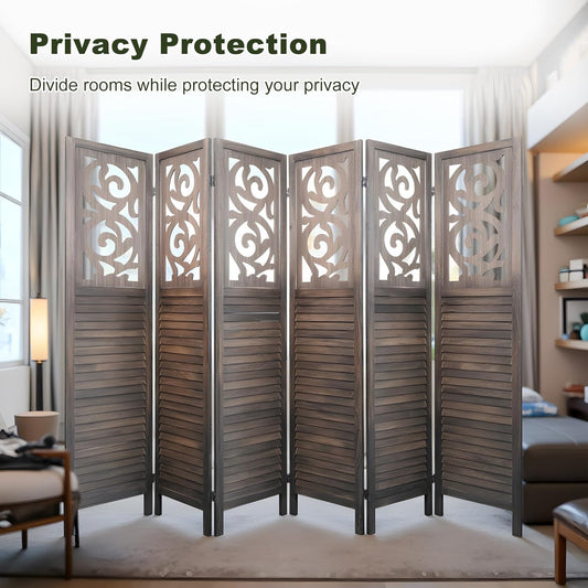 NicBex 6 Panel Room Divider,5.6FT Wood Carved Room Dividers,Folding Privacy Screens Portable Freestanding Partition Wall Dividers for Room Separation,Home Bedroom Office,Rustic Brown