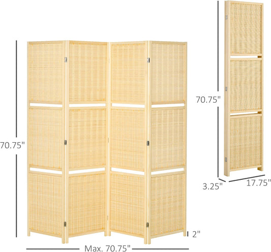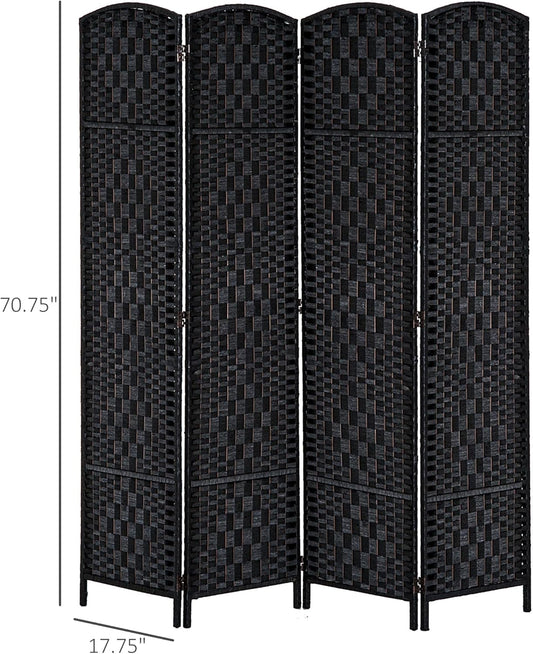 HOMCOM Room Divider 4 Panels Folding Privacy Screen 6FT Tall Portable Wicker Weave Partition Wall Divider for Bedroom Home Office, Black