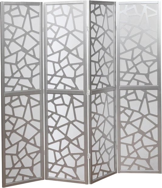 NicBex Room Divider 4 Panel Room Dividers with Circle Pattern Partition Room Dividers and Folding Privacy Screens Wall Divider for Home, Office, Room Separation,70" W x 1" D x 70" H, White+Silver
