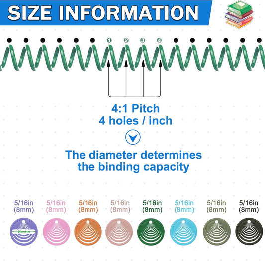 120 Pack Plastic Spiral Binding Coils Binder Binding Spirals Rings Multi Size Spiral Binding Wire Combs Spines Coils, 4:1 Pitch (Colorful, 5/16 Inch)