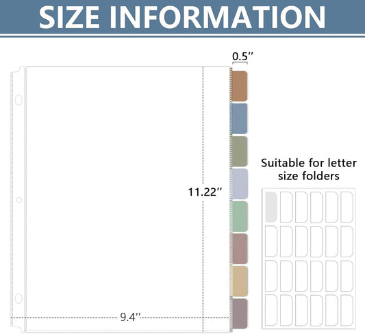 8 Set of 64 Pack Clear Binder Sheet Protectors for 3 Ring Binder Plastic Page Protector with 8 Tabs,Insertable Index Page Divider 8.5x11 Inch(Vintage)