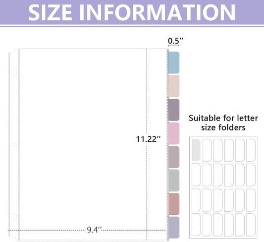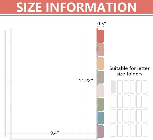 8 Set of 64 Pack Clear Binder Sheet Protectors for 3 Ring Binder Plastic Page Protector with 8 Tabs,Insertable Index Page Divider 8.5x11 Inch(Boho Color)