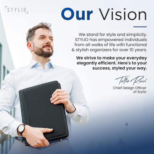 STYLIO Zipper Padfolio Portfolio Binder Organizer | Faux Leather Portfolio for Resume, Documents, Phone, Tablet, Business Supplies and Cards | Notebook Organizer with Letter Sized Notepad Included