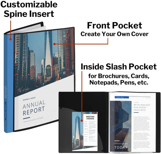 Dunwell Presentation Binder 24-Pocket, Displays 48 Pages, 8.5x11 Portfolio Binder with Plastic Sleeves, Storage and Organizer for Documents, Certificates, Projects, Photos (3 Pack, Assorted)
