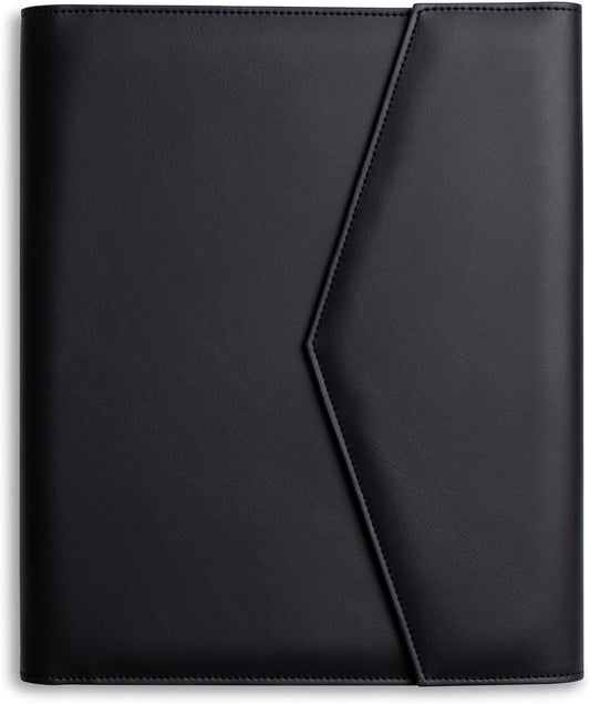 Padfolio Binder Organizer for Women | Faux Leather Portfolio Folder for Resume, Documents, Notebook, Tablet and Business Cards | Notepad Included - Black