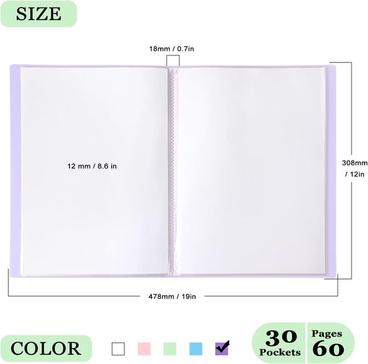 Tamaki Portfolio Binder with Plastic Sleeves, Pocket Portfolio Folder with Clear Sheet Protectors, Display 60 Pages Book, Presentation Book for Artwork, Document Organizer, 1 Pack (Purple)