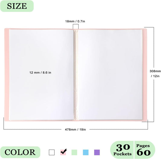 Tamaki Portfolio Binder with Plastic Sleeves, Pocket Portfolio Folder with Clear Sheet Protectors, Display 60 Pages Book, Presentation Book for Artwork, Document Organizer, 1 Pack (Pink)