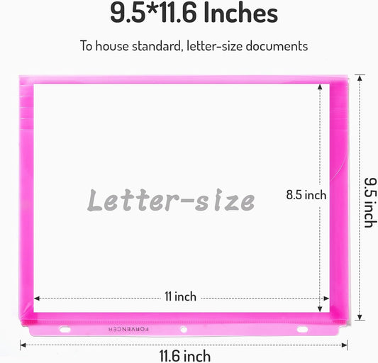 Forvencer Binder Pocket, 4X Regular Capacity, 10 Pack Super Heavyweight Plastic Folders with Tight Closure, Folders with Pockets Side Loading, Binder Organizer, Binder Dividers, Letter Size, Extended
