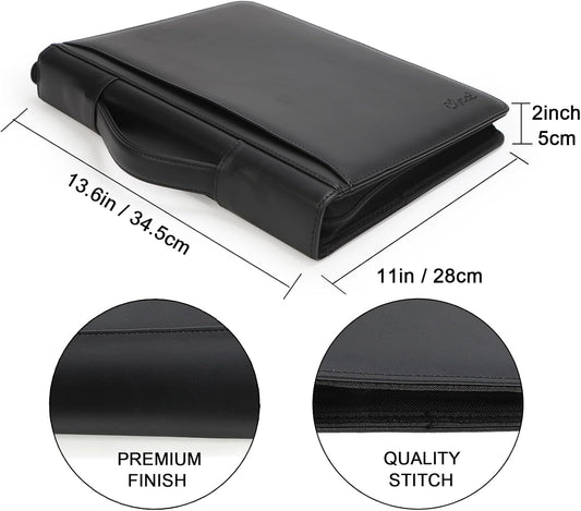 Yodo Zipper Padfolio Portfolio Binder Organizer PU Leather Portfolio for Resume, Legal Documents, Tablet, Business Supplies and Cards,3-Ring Binder with Handle, Notepad Folder for Men & Women
