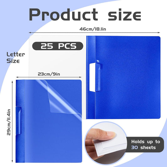 Maitys 25 Pack Clear Report Covers with Clip 11.4 x 9 Inch Presentation Folders Transparent Front Cover Portfolio Folder Resume Folder Interview Report Folders for Letter Size(Blue)