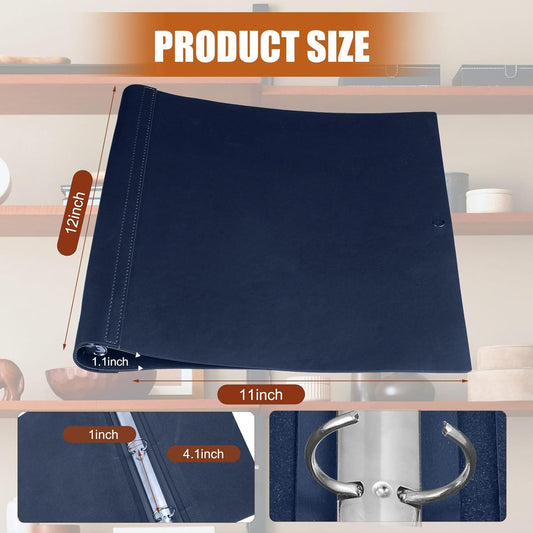 Leather 3 Ring Binder Holds 8.5 x 11 Inch Paper Binder Organizer Vintage Faux Leather Portfolio Folder Planner for Office Home Document Photo Diary Supplies(Navy Blue)