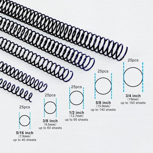 Rayson Plastic Spiral Binding Coil, Mixed Sizes (5/16", 3/8", 1/2", 5/8", 3/4") 4:1 Pitch Black Coil Binding Spines for Business and Educational Purposes, Pack of 125