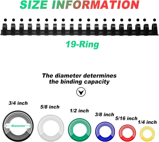 Yunsailing 150 Pack Plastic Binding Combs Plastic Binder Comb Ring 19 Ring Binding Spines Letter Size Spiral coils for Notebook Calendar(1/4 5/16 3/8 1/2 5/8 3/4 in,Multi Colors)