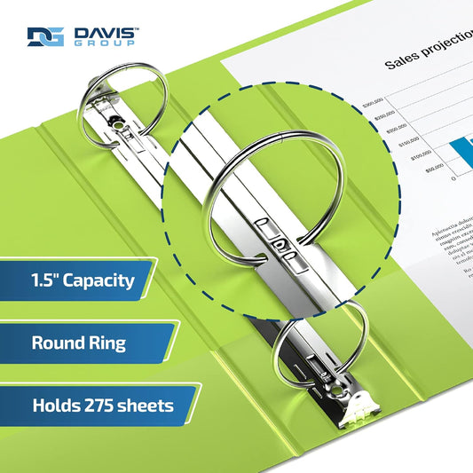 Easyview Premium 3-Ring Binders with Clear-View Covers and Round Rings, Binders for School or Office, 1.5 Inch, Pack of 6, Lime Green