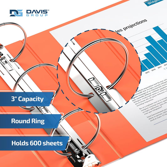 Easyview Premium 3-Ring Binders with Clear-View Covers and Round Rings, Binders for School or Office, 3 Inch, Pack of 6, Orange
