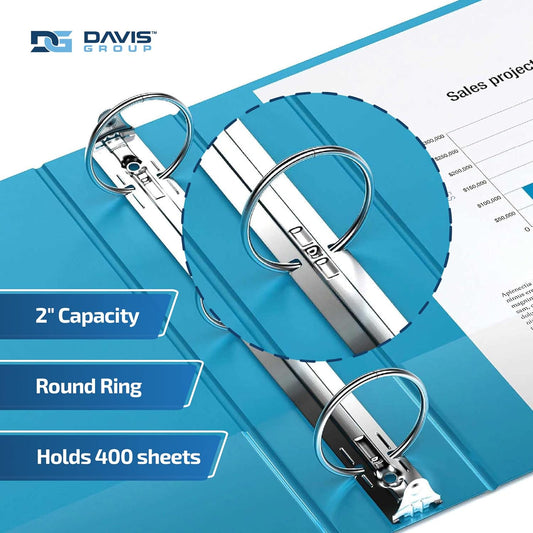 Easyview Premium 3-Ring Binders with Clear-View Covers and Round Rings, Binders for School or Office, 2 Inch, Pack of 6, Turquoise Blue