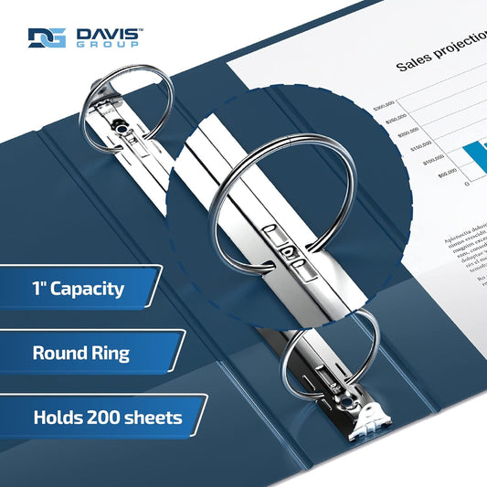 Easyview Premium 3-Ring Binders with Clear-View Covers and Round Rings, Binders for School or Office, 1 Inch, Pack of 6, Navy Blue