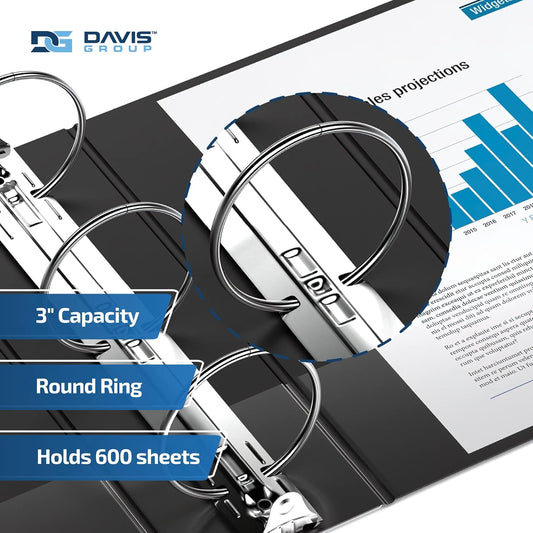Easyview Premium 3-Ring Binders with Clear-View Covers and Round Rings, Binders for School or Office, 3 Inch, Pack of 6, Black