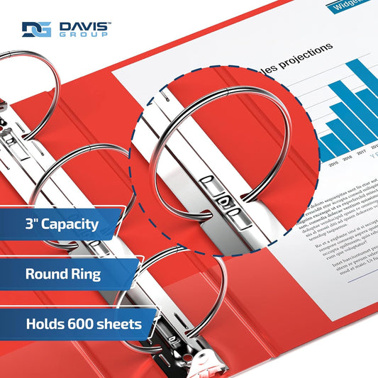 Easyview Premium 3-Ring Binders with Clear-View Covers and Round Rings, Binders for School or Office, 3 Inch, Pack of 6, Red