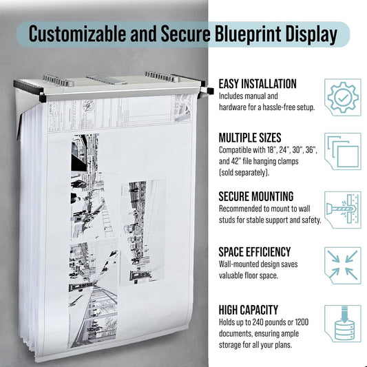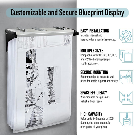 Adir Blueprint Wall Rack - Blueprint Plans Organizer and Construction Plan Holder - Poster Display and Map Rack for Office and Home (Without Blueprint Clamps)