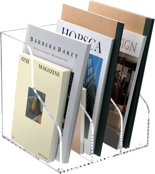 Magazine Holder, Clear Acrylic Magazine Rack, File Organizer for Office Desk, Book Organizer,-One-Piece-3 Vertical spaces,1 pack (B5)……
