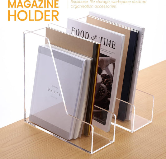 Magazine Holder, Clear Acrylic Desk Organizers, File Organizer for Desk, Magazine Rack- Desktop Book Storage -Independent Vertical 1 Space-2 Pack