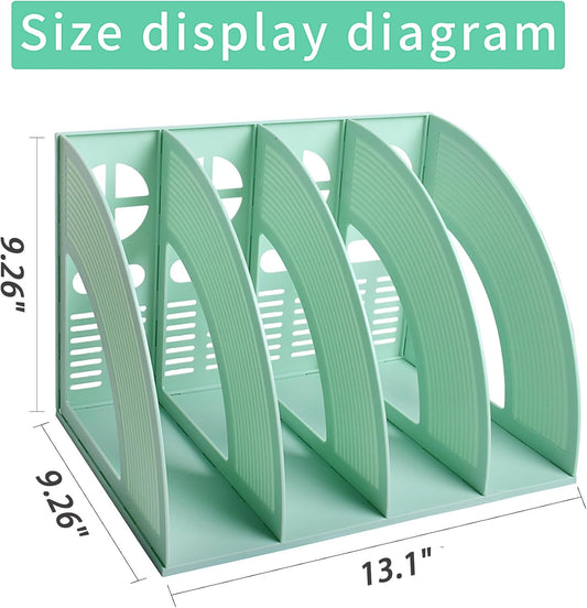 SAYEEC Magazine File Holder Folder Storage Desktop 4 Compartment Standing Hollow Green Files Bookshelf Organizer Box Office Racks Displays Holds Notebooks Documents for School Working Students