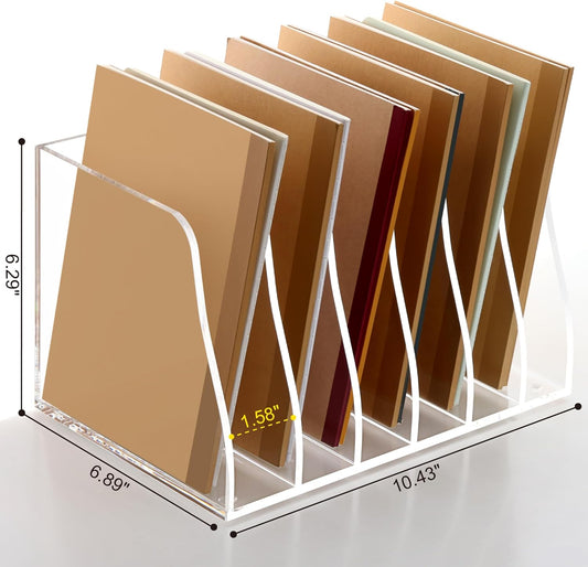 SANRUI Acrylic Desk File Organizer, 6 Vertical Compartments Clear Magazine File Holder Workspace Sorters, Folder Rack for Office Accessories Organization Storage