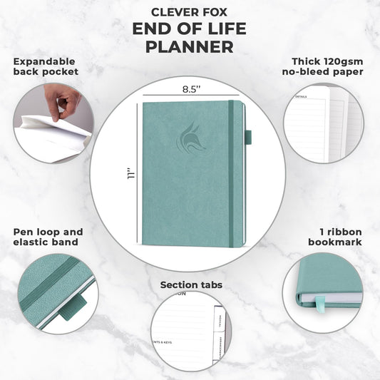 Clever Fox End of Life Planner – Final Arrangements Organizer for Beneficiary, Will Preparation, Last Wishes & Funeral Planning, A5 (Mint Cream)